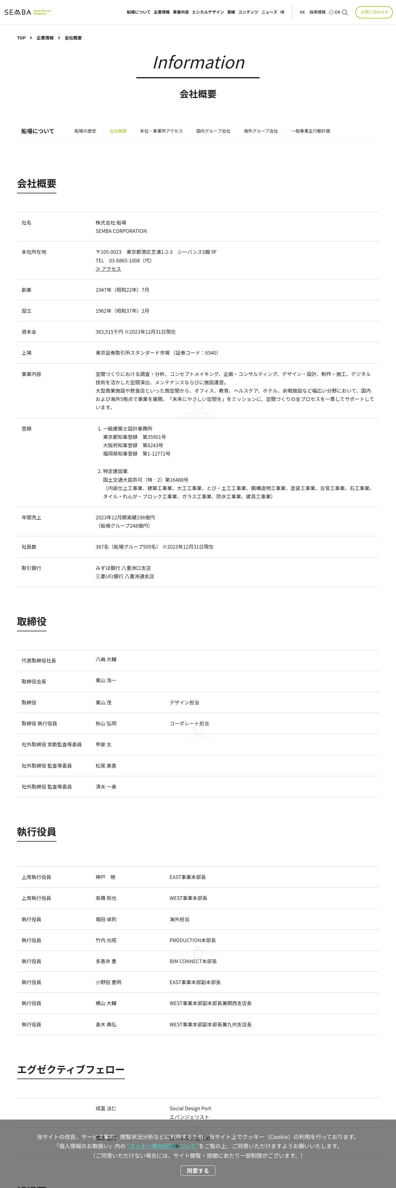 https://www.semba1008.co.jp:443/ja/company/information