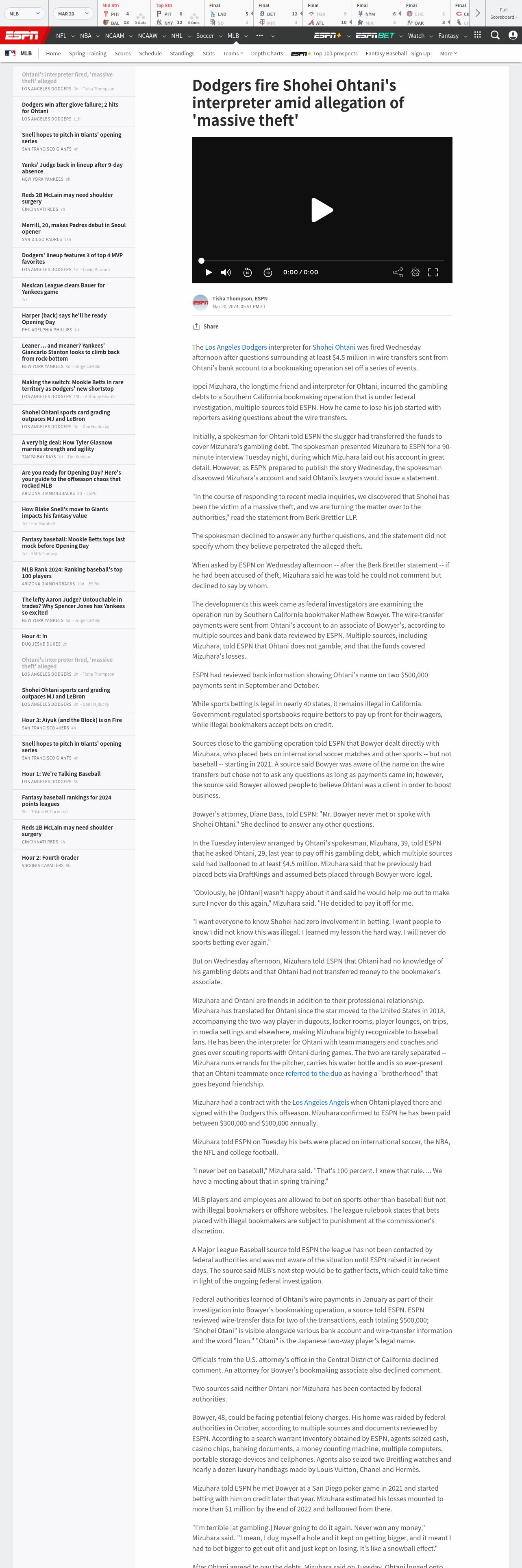 取得元URL: https://www.espn.com:443/mlb/story/_/id/39768770/dodgers-shohei-ohtani-interpreter-fired-theft