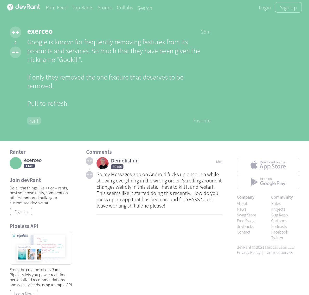 https://devrant.com:443/rants/10503684/google-is-known-for-frequently-removing-features-from-its-products-and-services