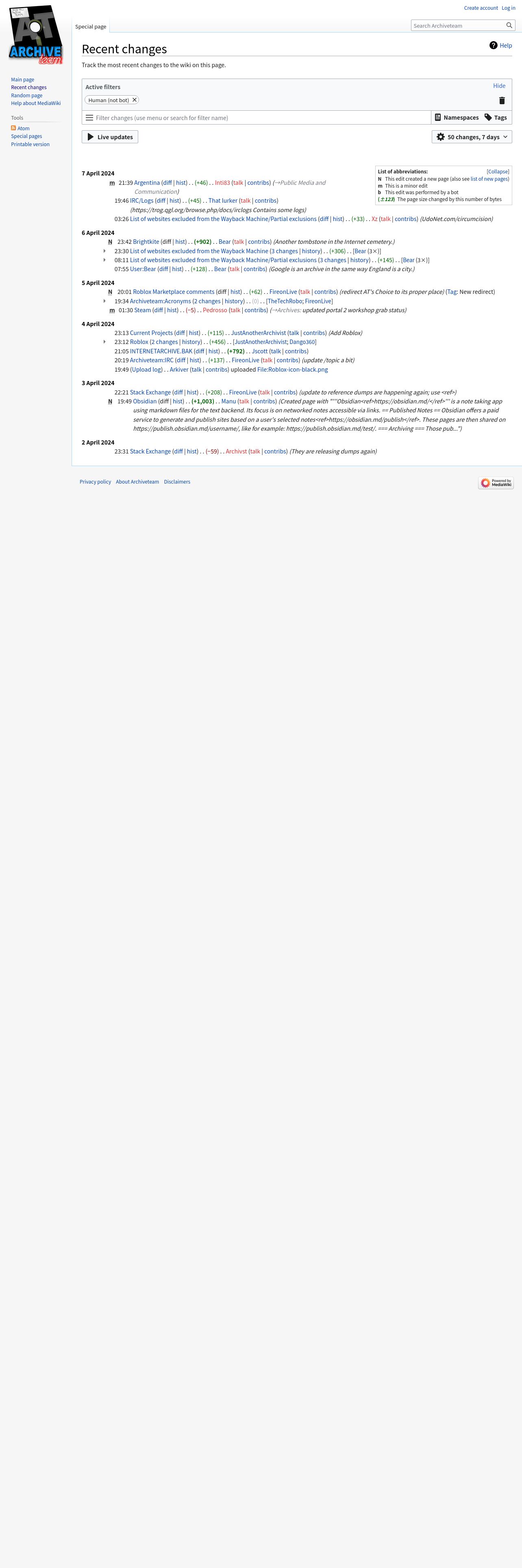 https://wiki.archiveteam.org:443/index.php/Special:RecentChanges