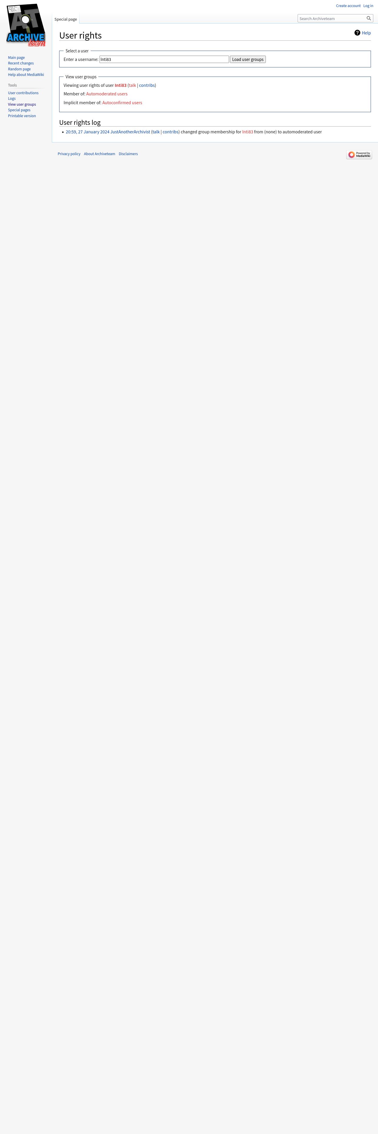 https://wiki.archiveteam.org:443/index.php/Special:UserRights/Inti83