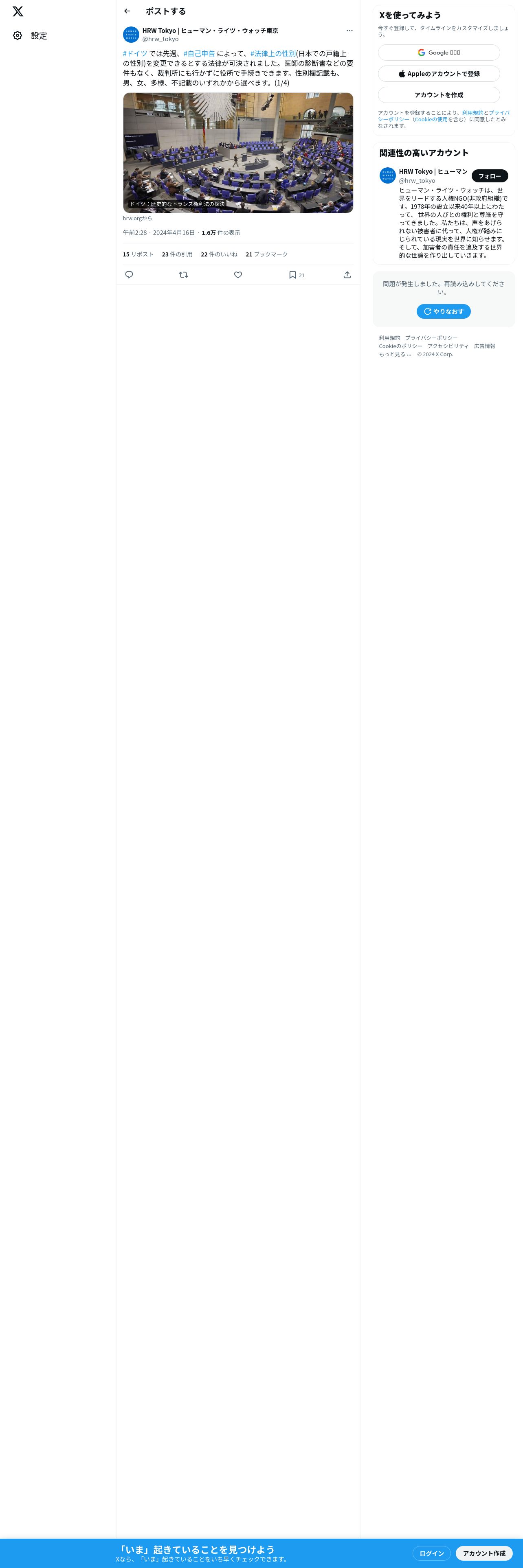 取得元URL: https://x.com:443/hrw_tokyo/status/1780060642969612665