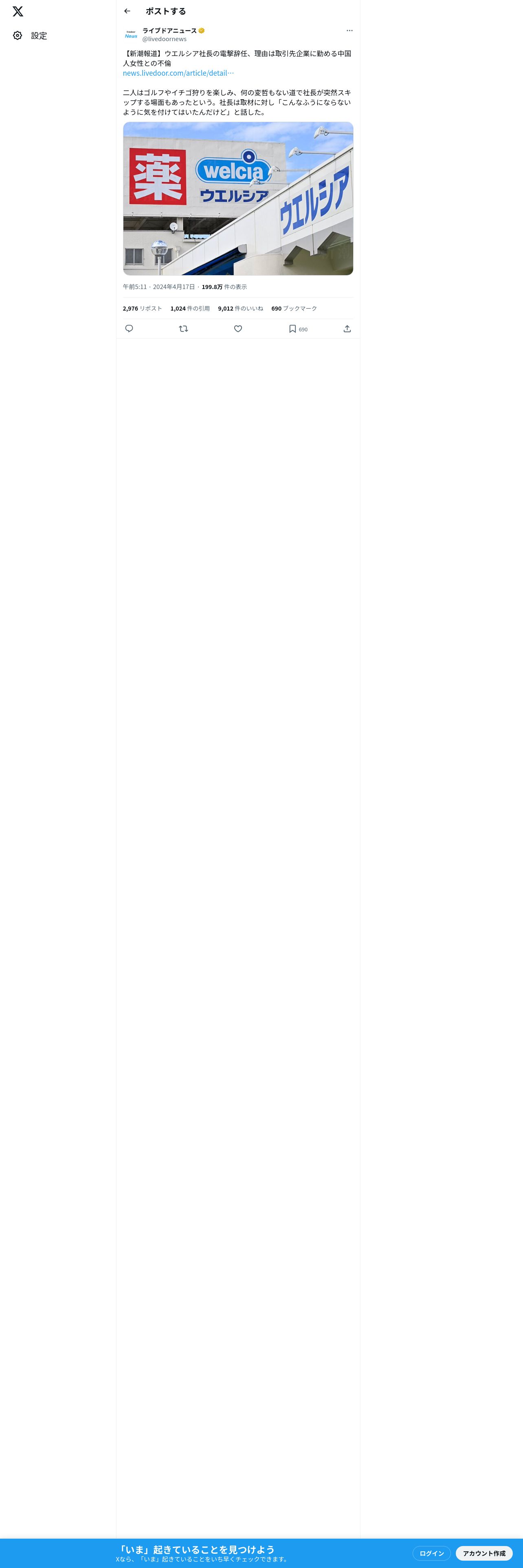 https://x.com:443/livedoornews/status/1780464167365025862