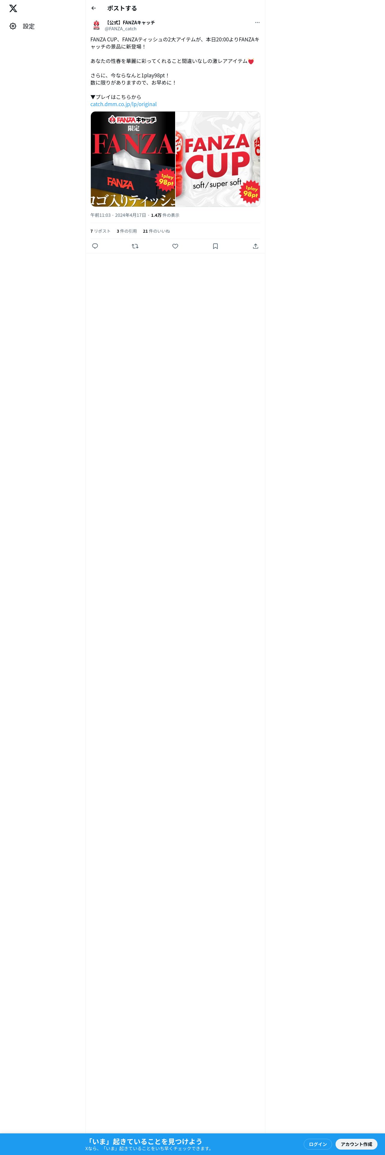 https://twitter.com:443/FANZA_catch/status/1780552658417553475