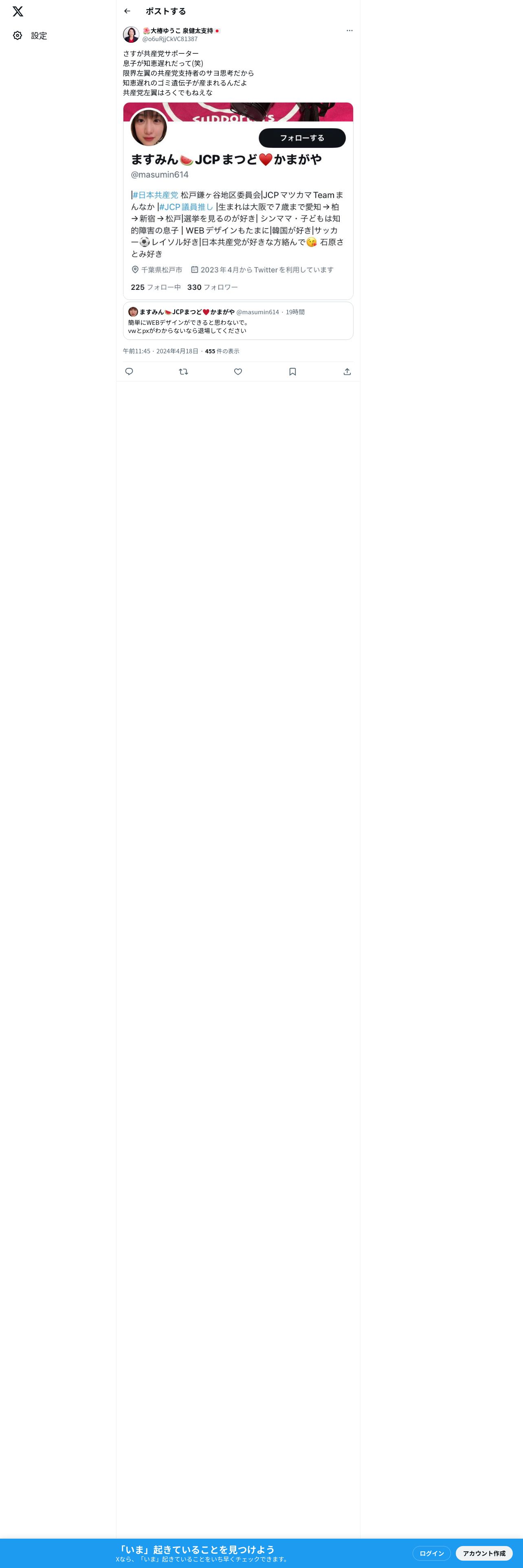 取得元URL: https://twitter.com:443/o6uRjjCkVC81387/status/1780925493161976118