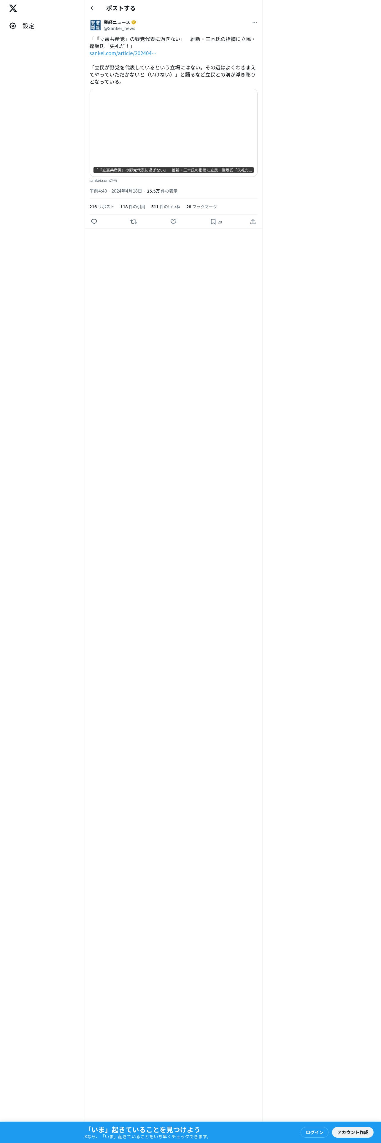 取得元URL: https://x.com:443/Sankei_news/status/1780818728646791200