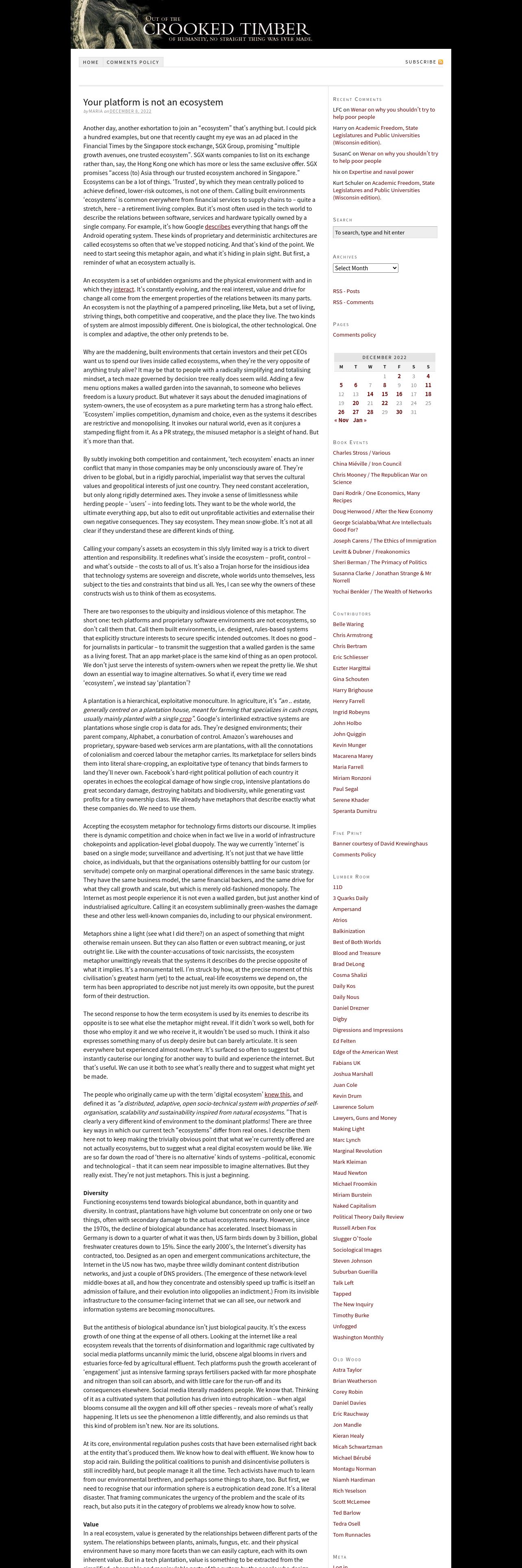 https://crookedtimber.org:443/2022/12/08/your-platform-is-not-an-ecosystem/