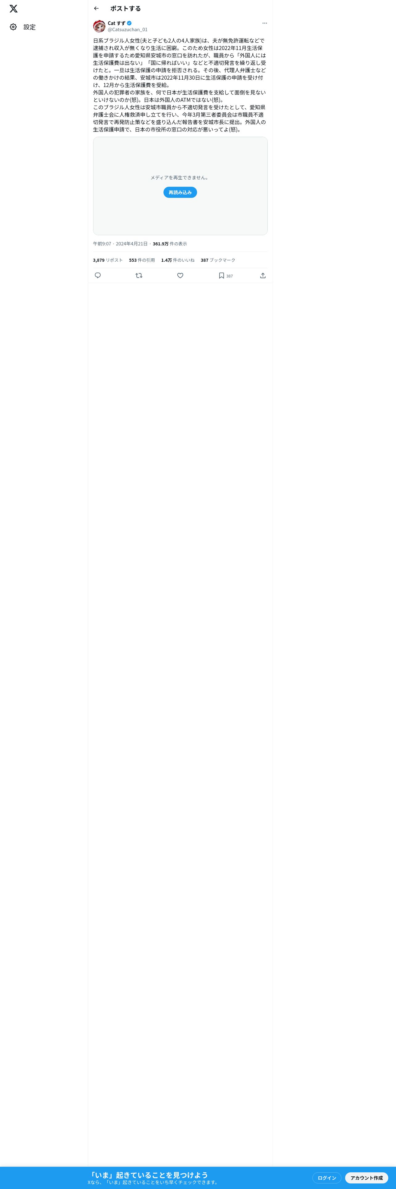 取得元URL: https://x.com:443/Catsuzuchan_01/status/1781973064324198591