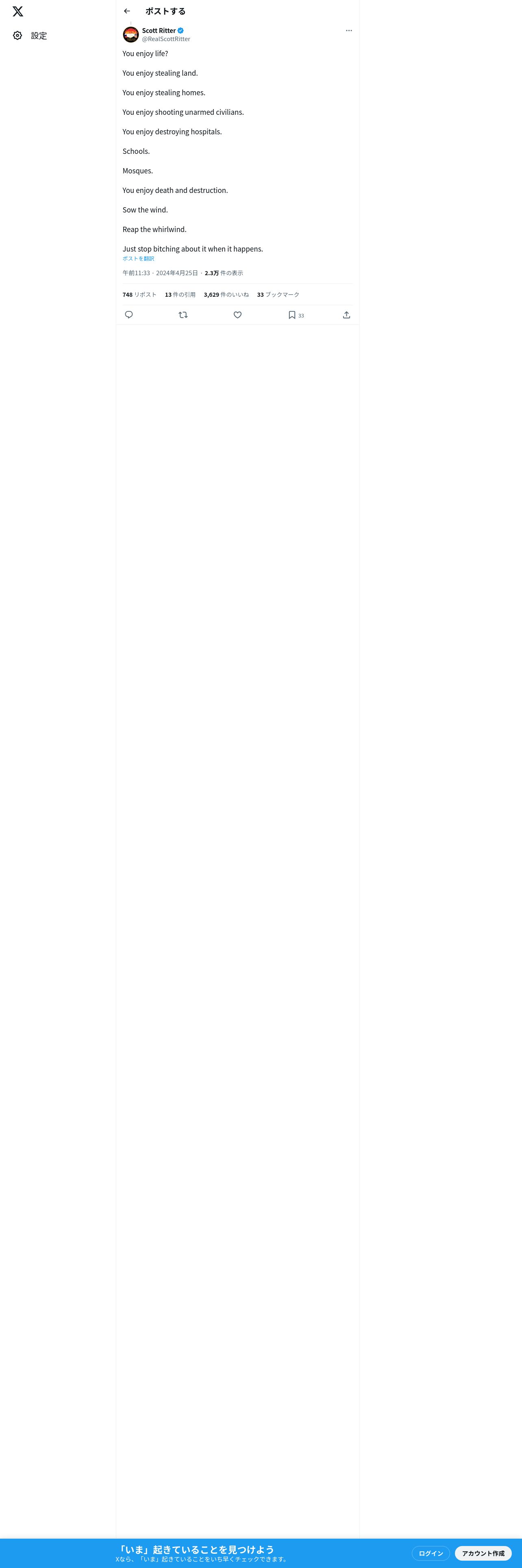 取得元URL: https://twitter.com:443/RealScottRitter/status/1783459431117725763?t=wA9S0JUyvwF3TbfuMVfKnA&s=19