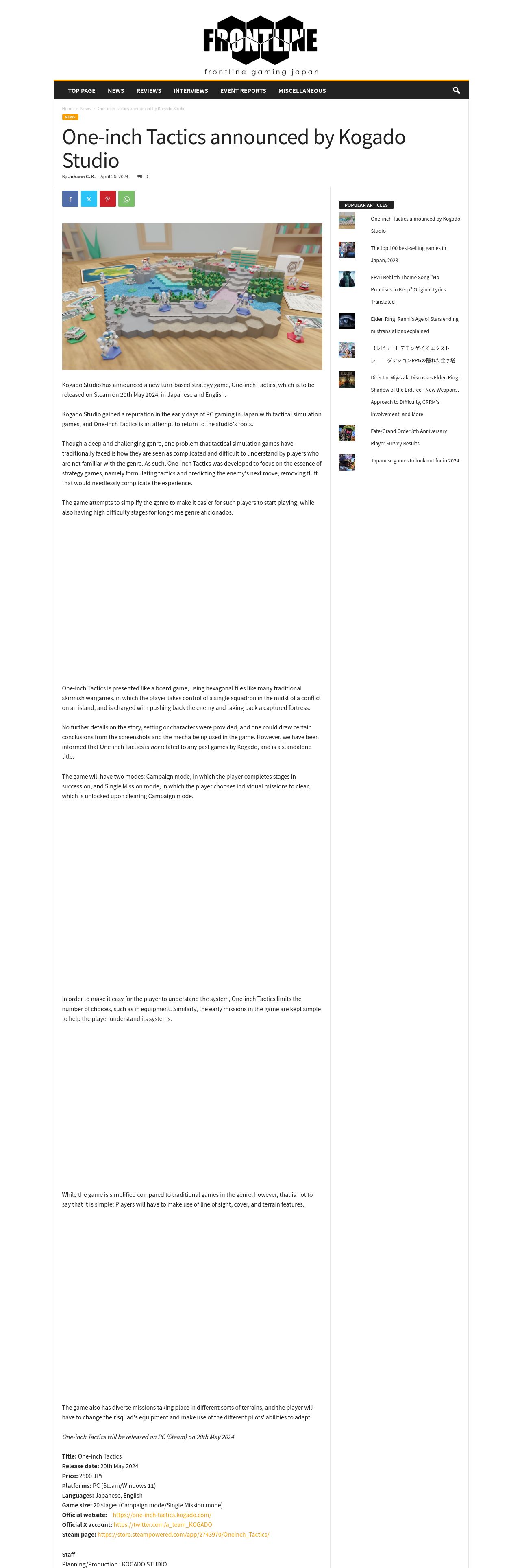 https://www.frontlinejp.net:443/2024/04/26/one-inch-tactics-announced-by-kogado-studio/