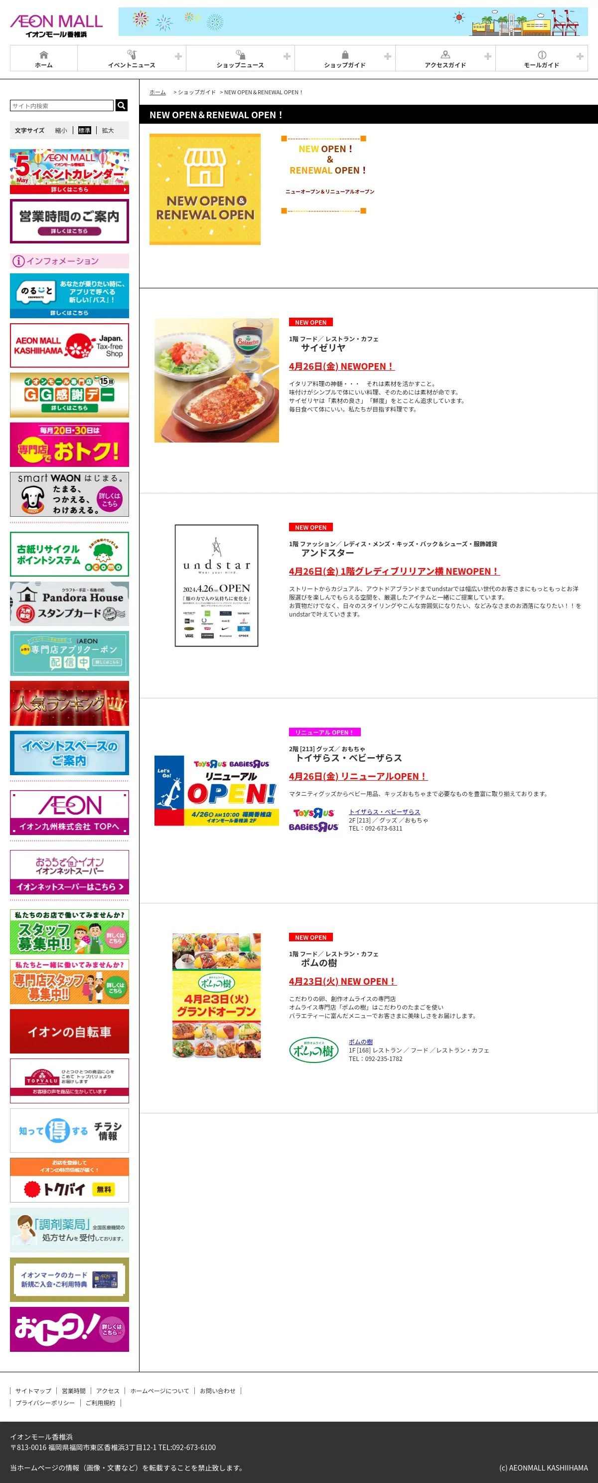 https://kashiihama-aeonmall.com:443/special/lists/newopenandrenewalopen