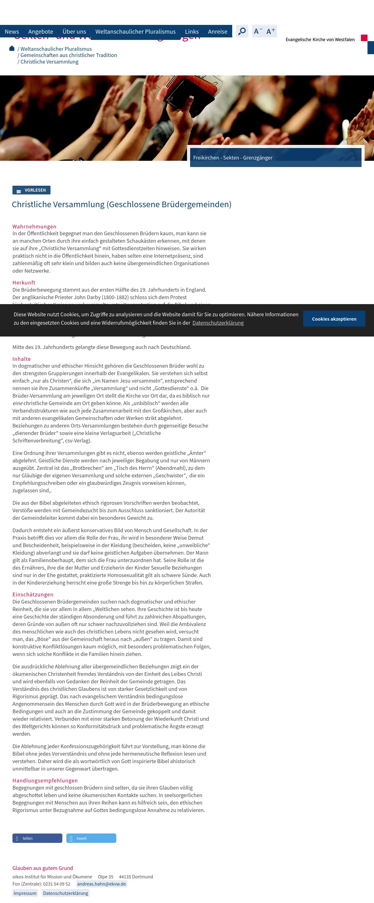 https://sektenfragen.ekvw.de:443/weltanschaulicher-pluralismus/gemeinschaften-aus-christlicher-tradition/christliche-versammlung/