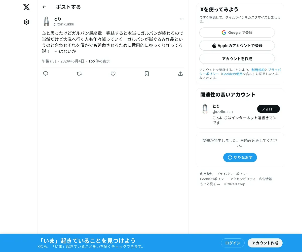 取得元URL: https://twitter.com:443/torikukku/status/1786705275233391020
