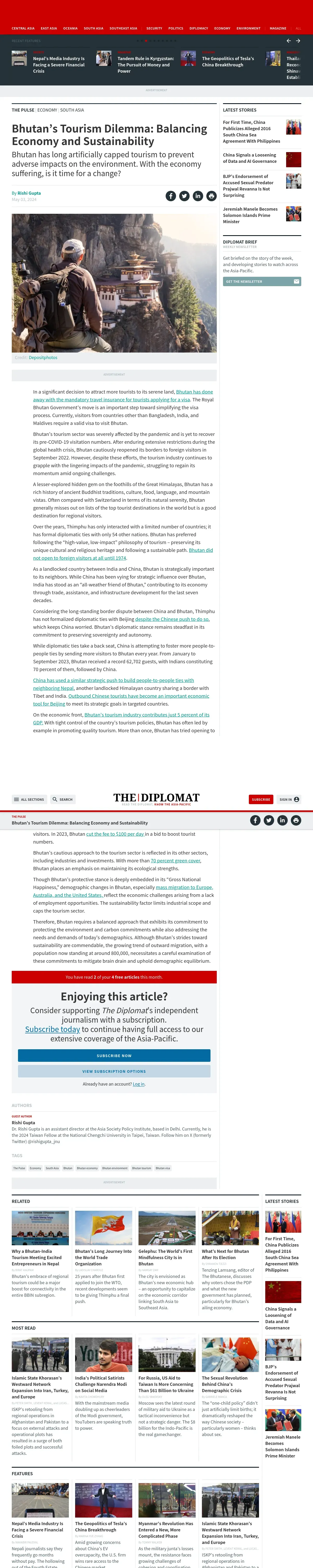 取得元URL: https://thediplomat.com:443/2024/05/bhutans-tourism-dilemma-balancing-economy-and-sustainability/