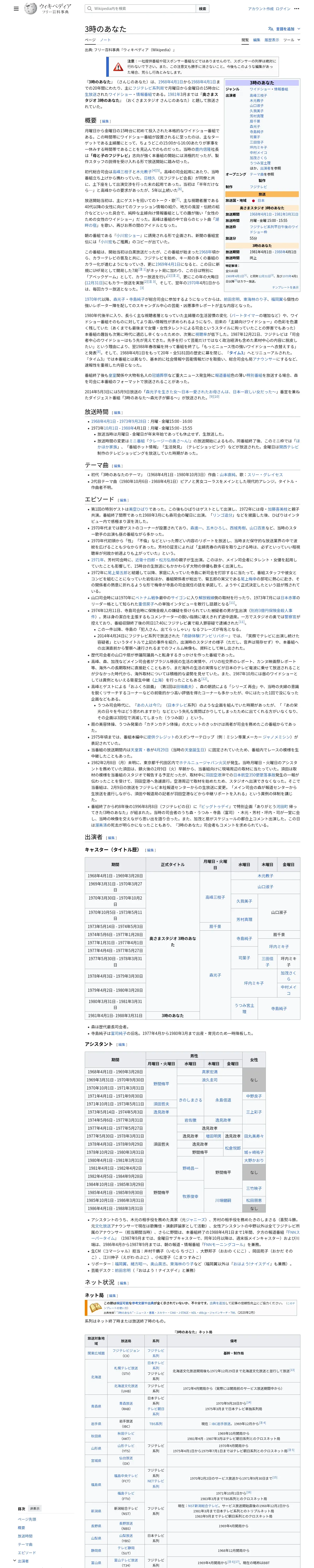 https://ja.wikipedia.org:443/wiki/3%E6%99%82%E3%81%AE%E3%81%82%E3%81%AA%E3%81%9F