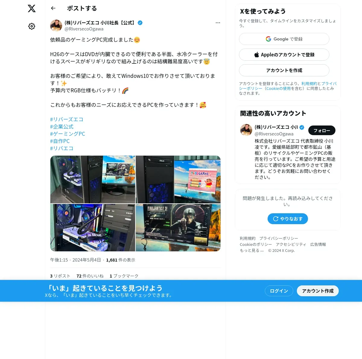 取得元URL: https://twitter.com:443/RiversecoOgawa/status/1786610682416558185