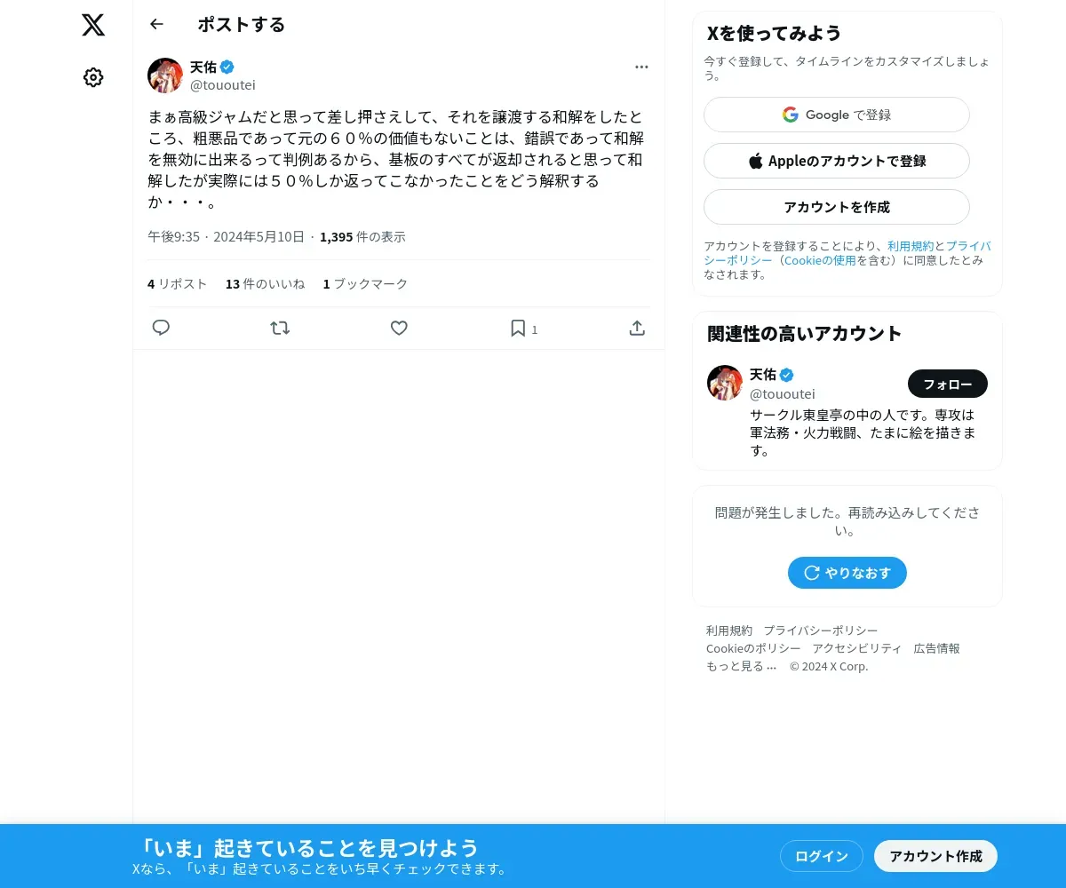 https://twitter.com:443/tououtei/status/1788910609582690671