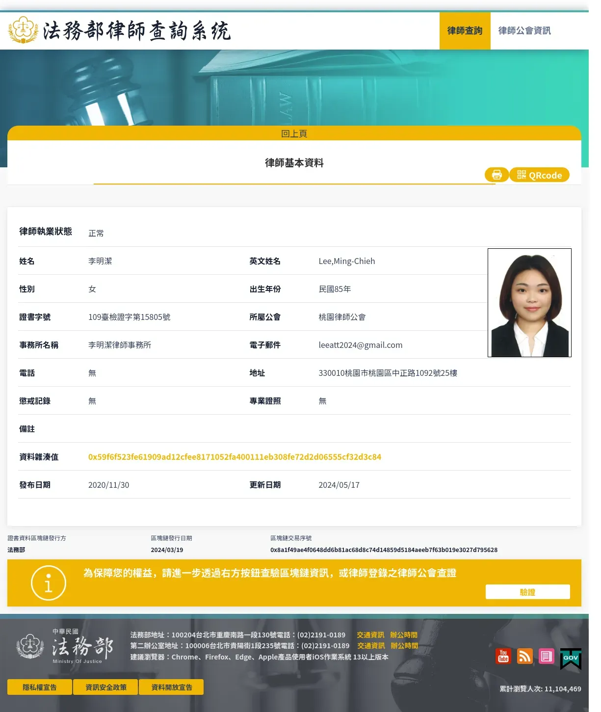 https://lawyerbc.moj.gov.tw:443/lawyer/0x59f6f523fe61909ad12cfee8171052fa400111eb308fe72d2d06555cf32d3c84