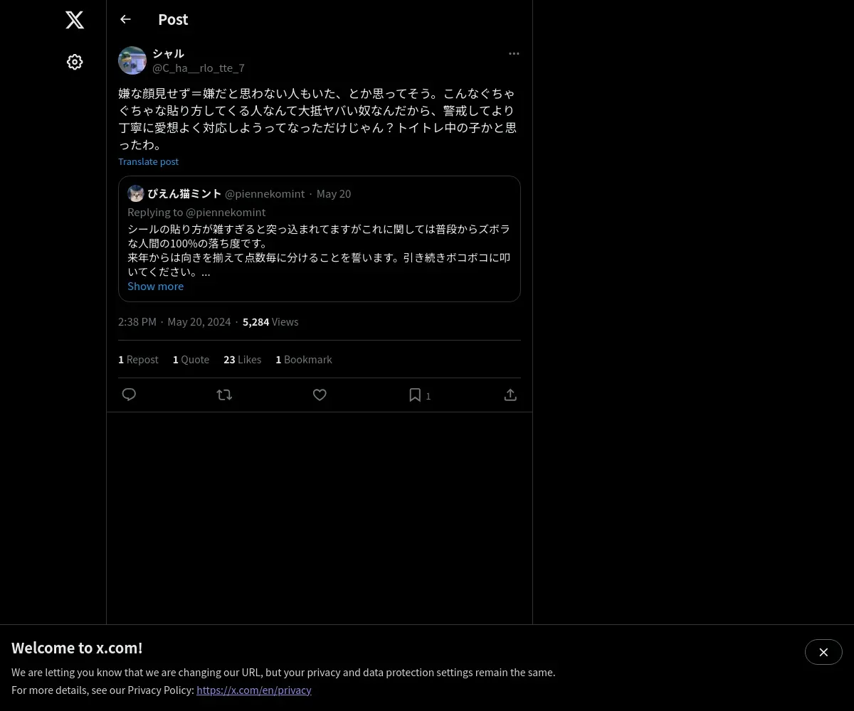 取得元URL: https://x.com:443/C_ha__rlo_tte_7/status/1792429768497119358