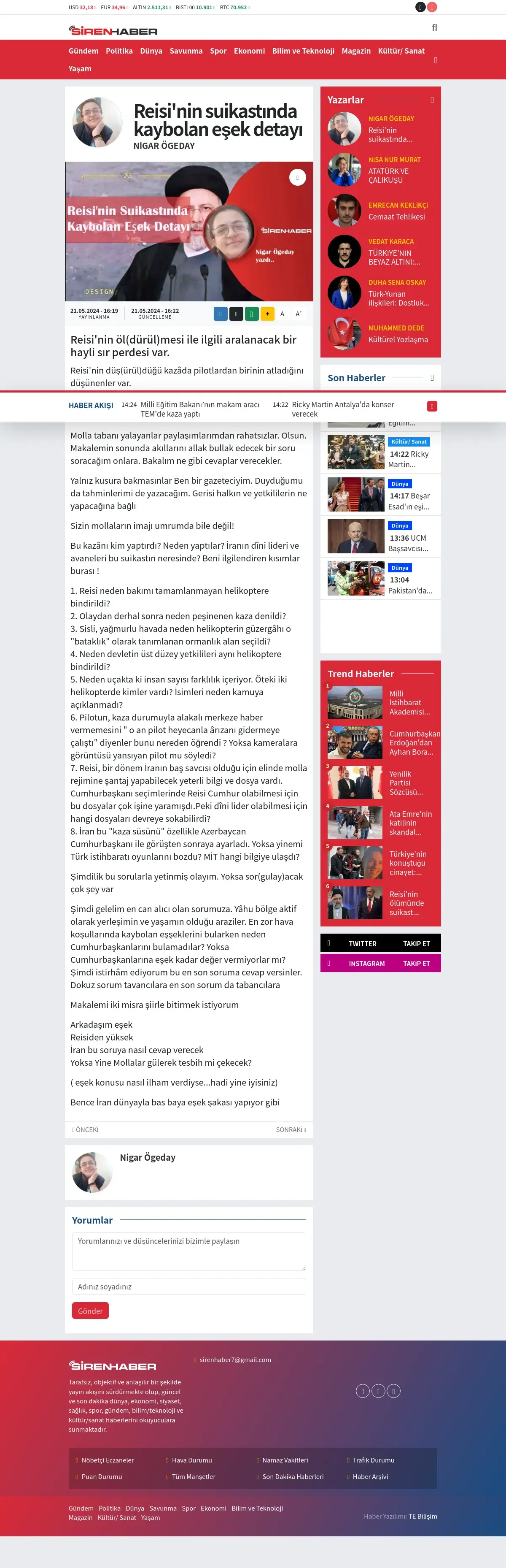https://www.sirenhaber.com:443/reisinin-suikastinda-kaybolan-esek-detayi