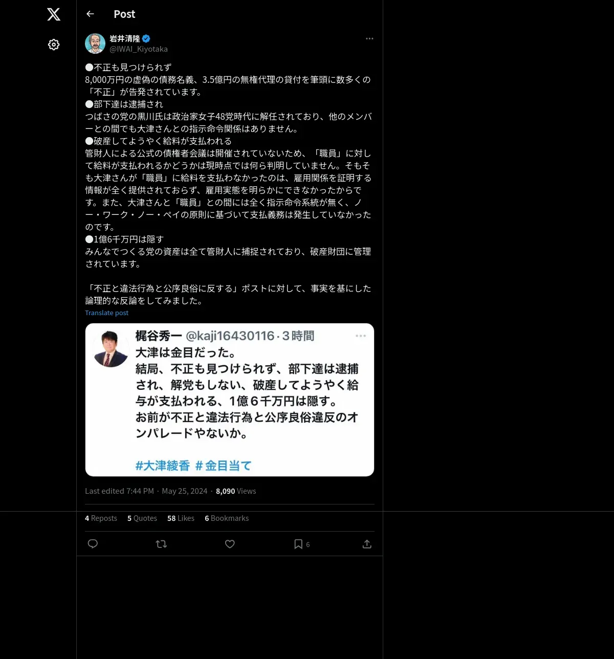 https://x.com:443/IWAI_Kiyotaka/status/1794318693540983006