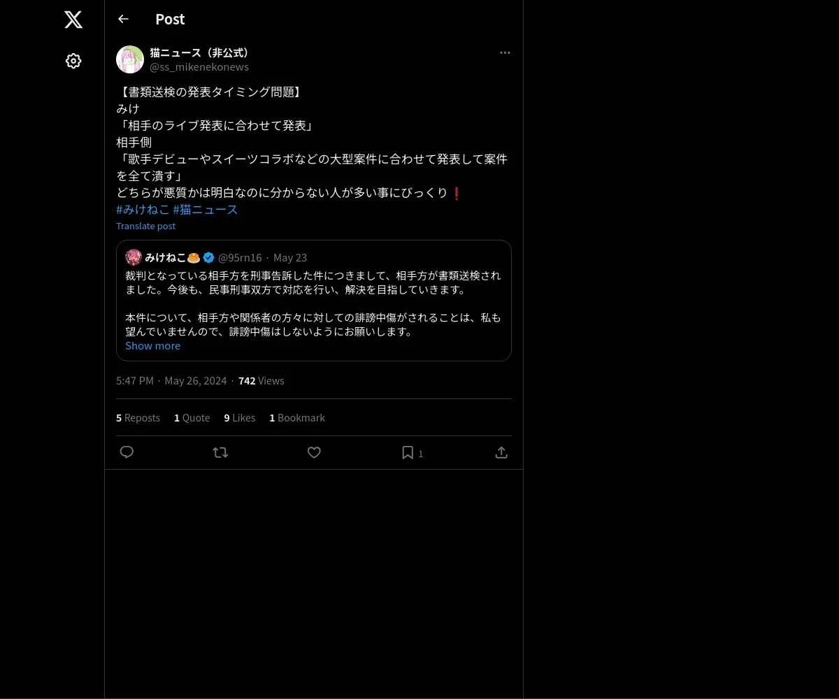 https://x.com:443/ss_mikenekonews/status/1794651449915580703