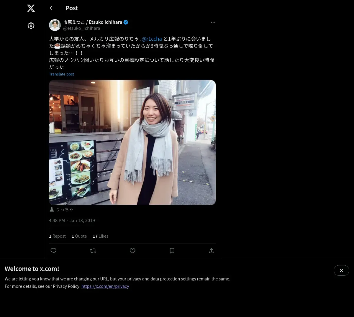 取得元URL: https://x.com:443/etsuko_ichihara/status/1084356388036370432