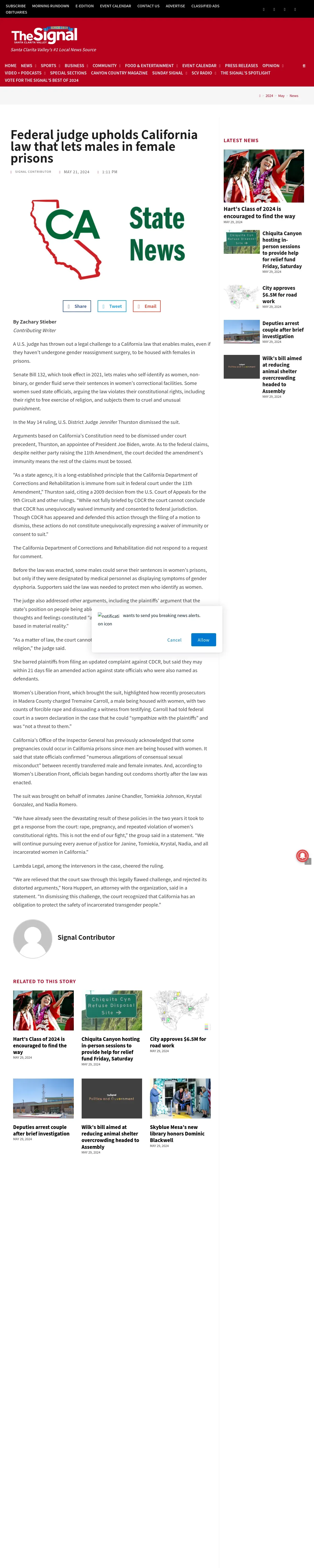https://signalscv.com:443/2024/05/federal-judge-upholds-california-law-that-lets-males-in-female-prisons/