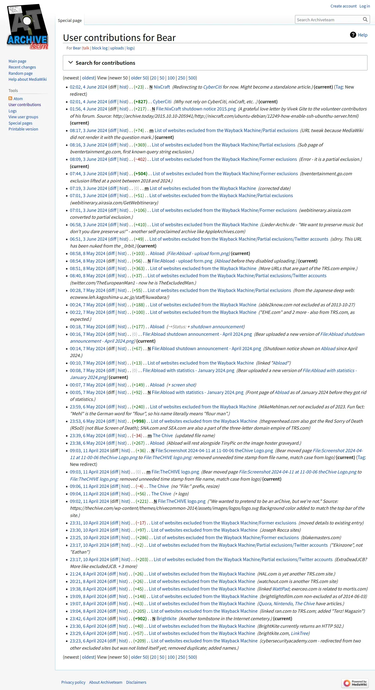 https://wiki.archiveteam.org:443/index.php/Special:Contributions/Bear