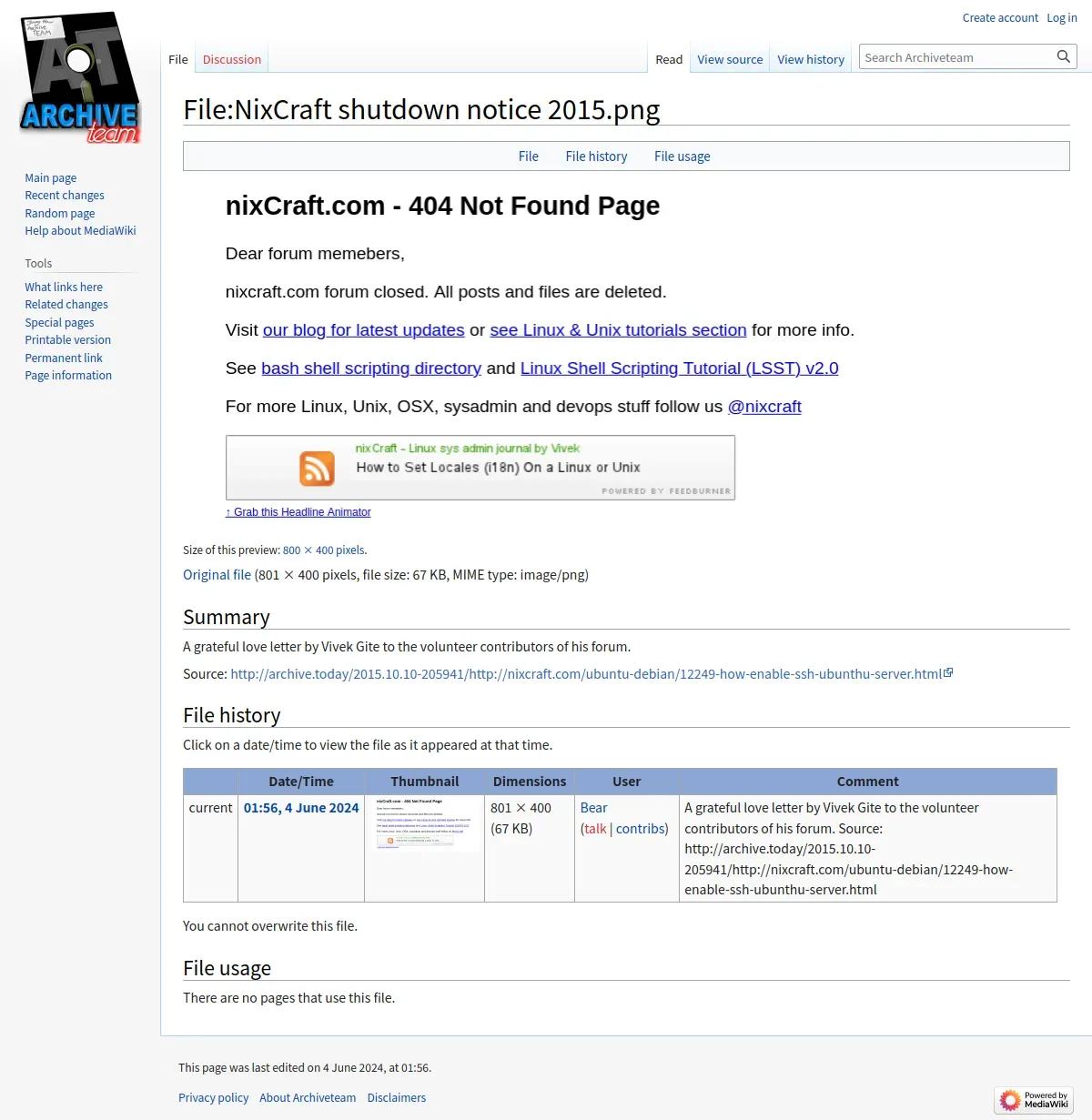 https://wiki.archiveteam.org:443/index.php/File:NixCraft_shutdown_notice_2015.png