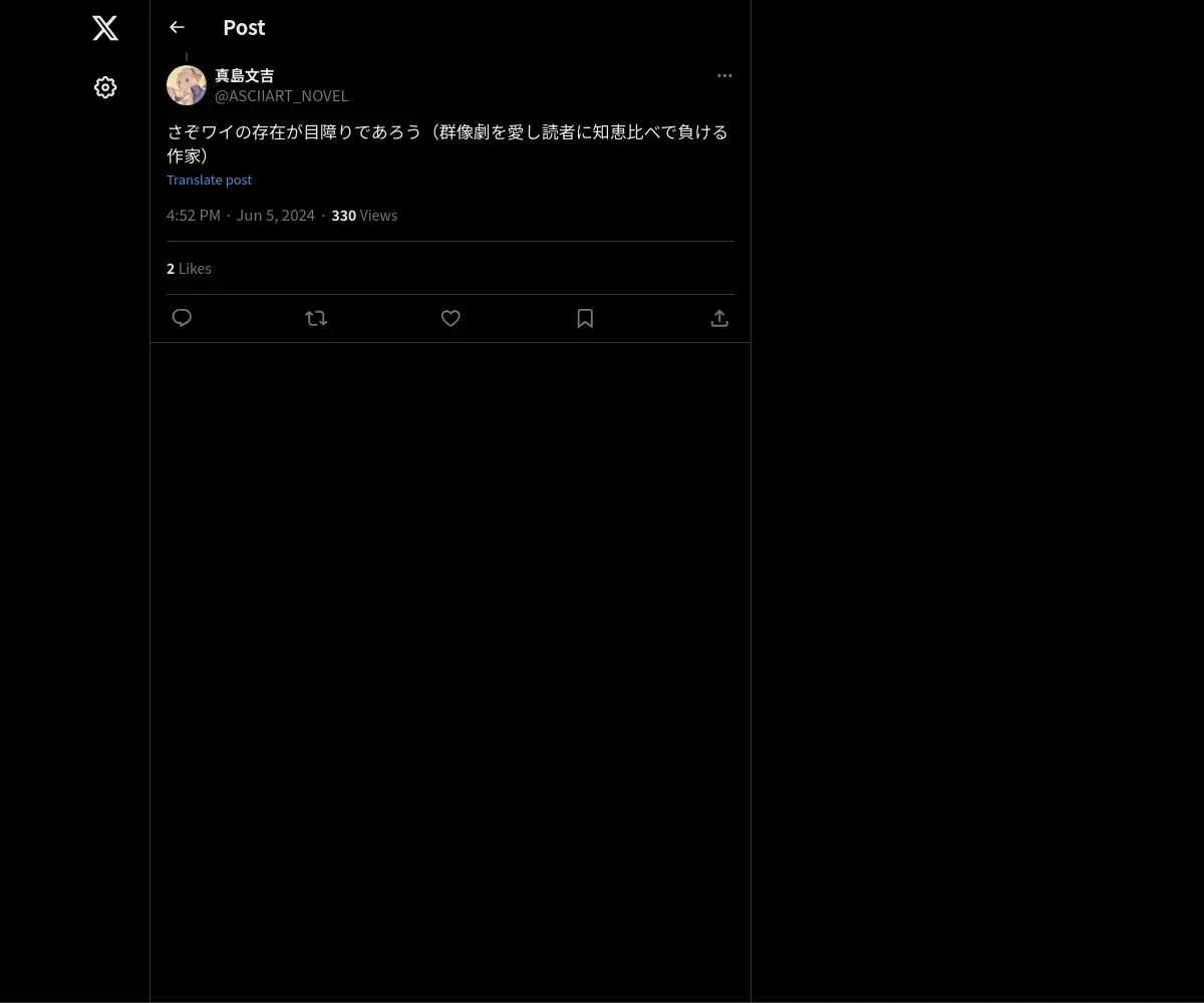 https://x.com:443/ASCIIART_NOVEL/status/1798261500144181304