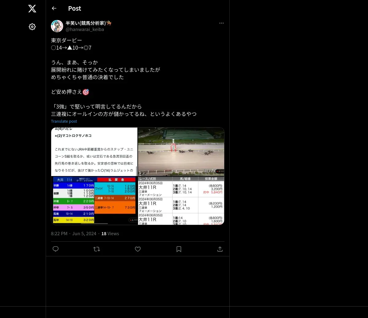 https://x.com:443/hanwarai_keiba/status/1798314450837209372