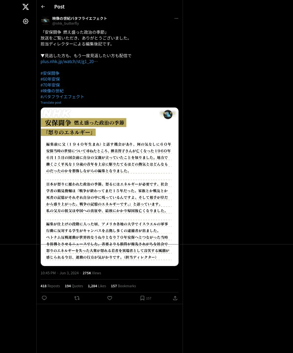 https://x.com:443/nhk_butterfly/status/1797625680139882702