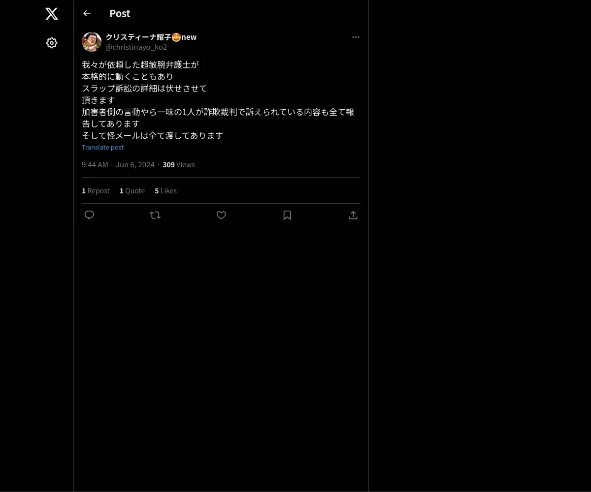 取得元URL: https://x.com:443/christinayo_ko2/status/1798516272420024629