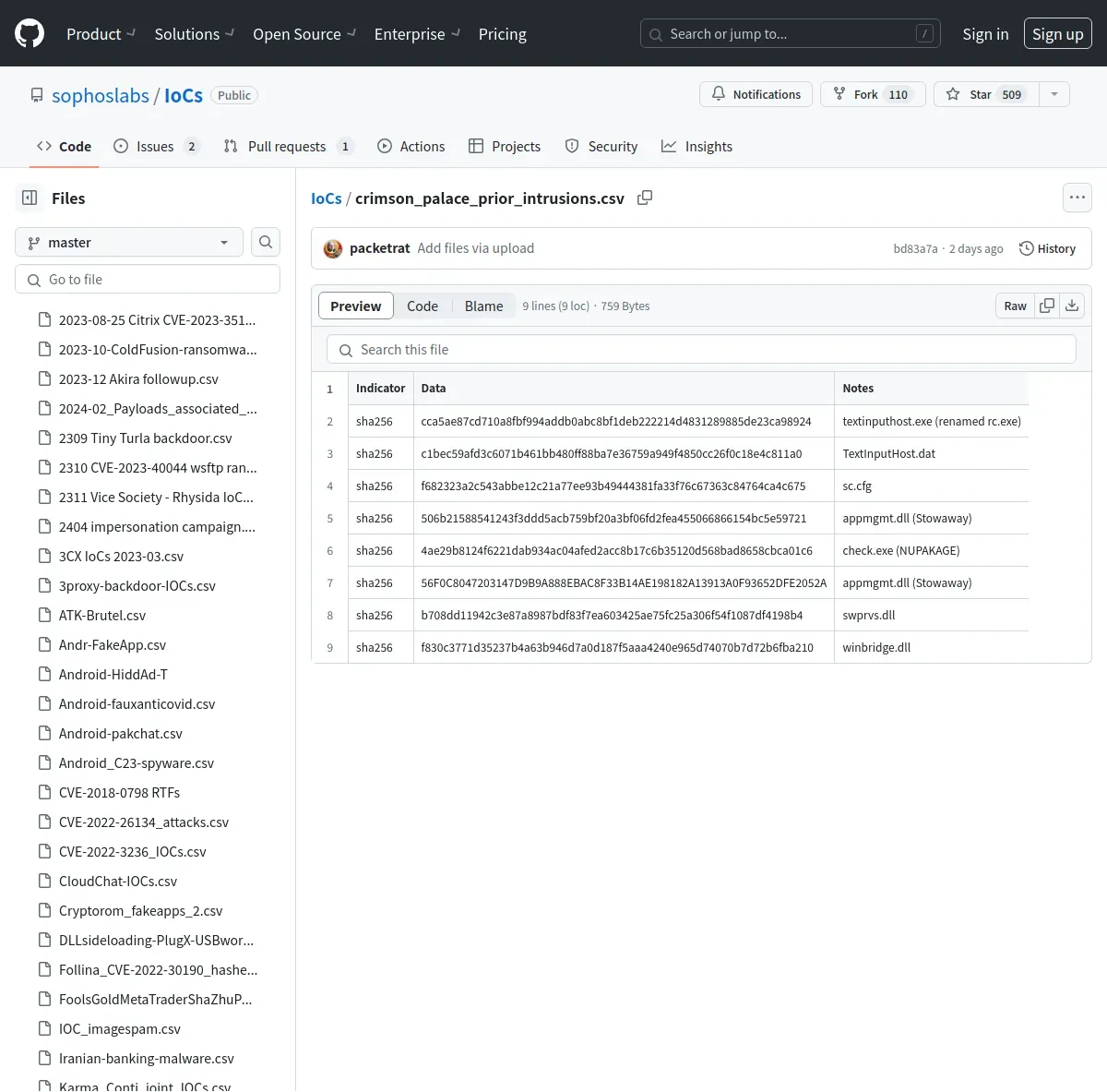 https://github.com:443/sophoslabs/IoCs/blob/master/crimson_palace_prior_intrusions.csv