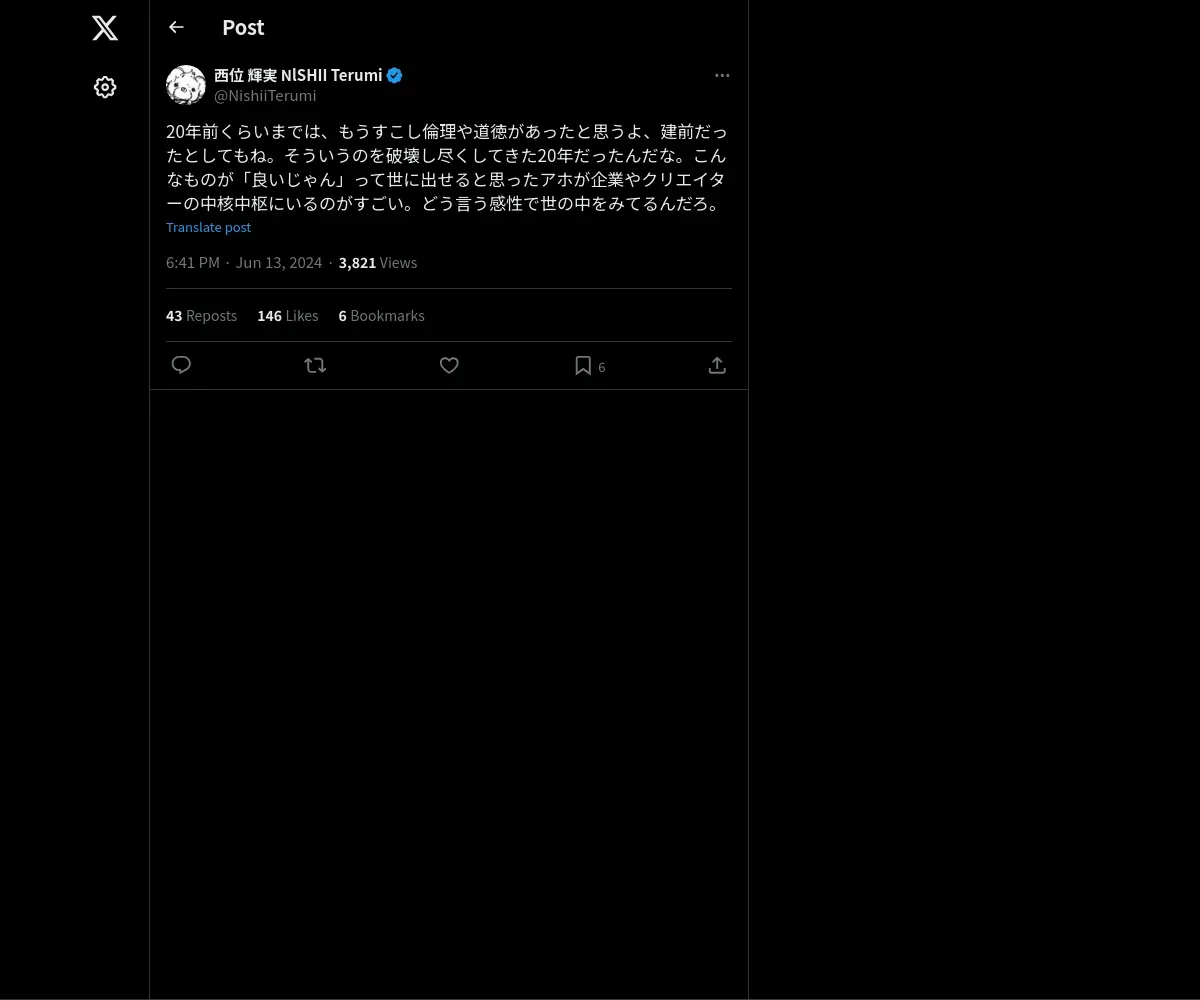 https://x.com:443/NishiiTerumi/status/1801188126247026692