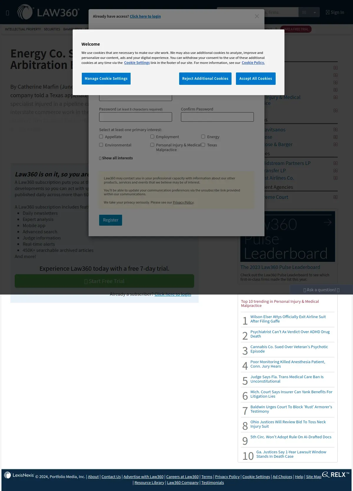 https://www.law360.com:443/personal-injury-medical-malpractice/articles/1847253/energy-co-says-specialist-can-t-get-arbitration-exemption