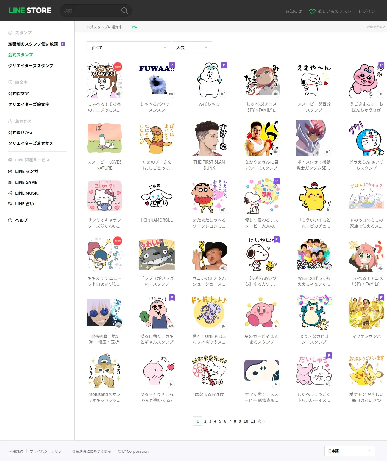 取得元URL: https://store.line.me:443/stickershop/showcase/top/ja