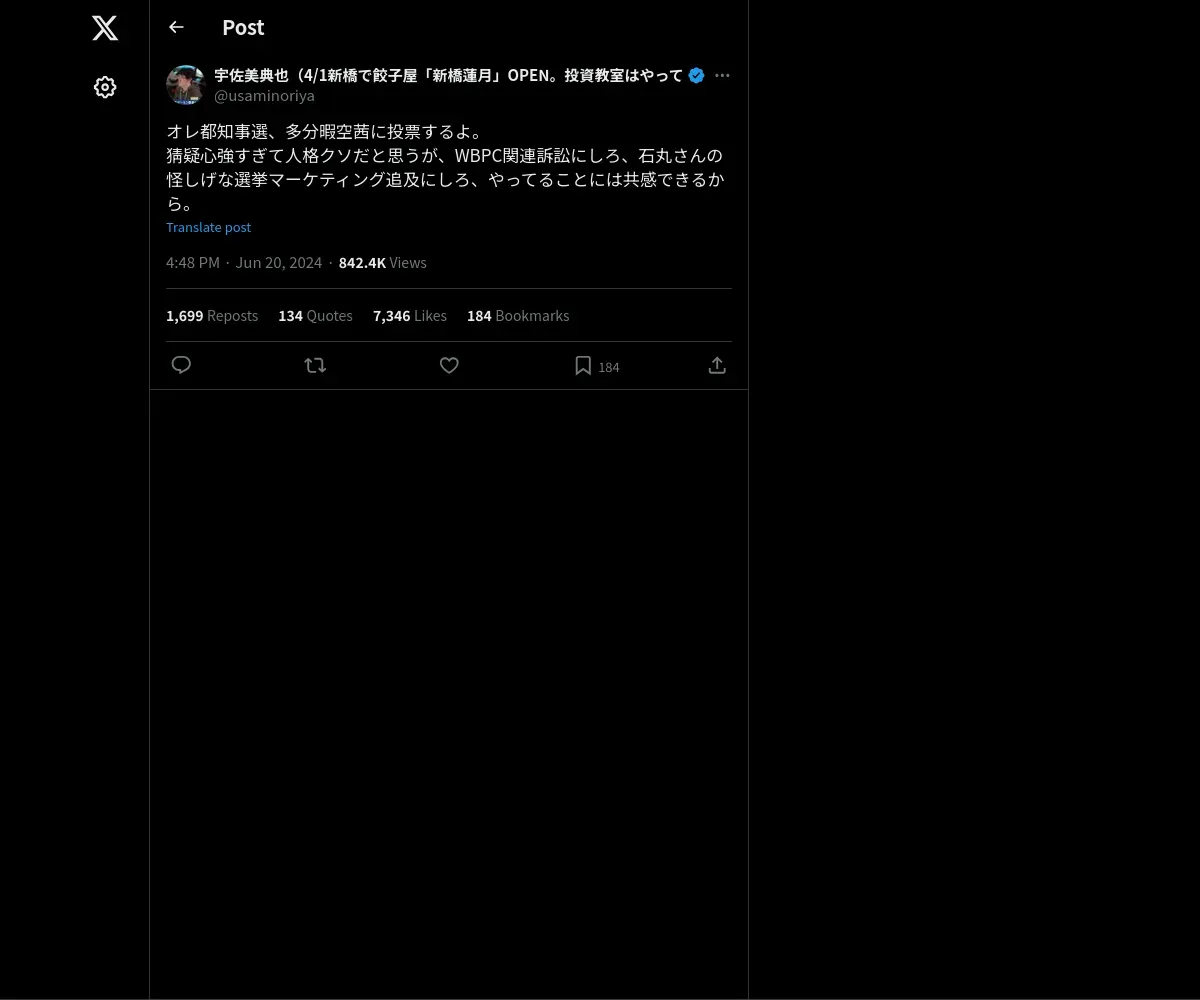 https://x.com:443/usaminoriya/status/1803696289479270770