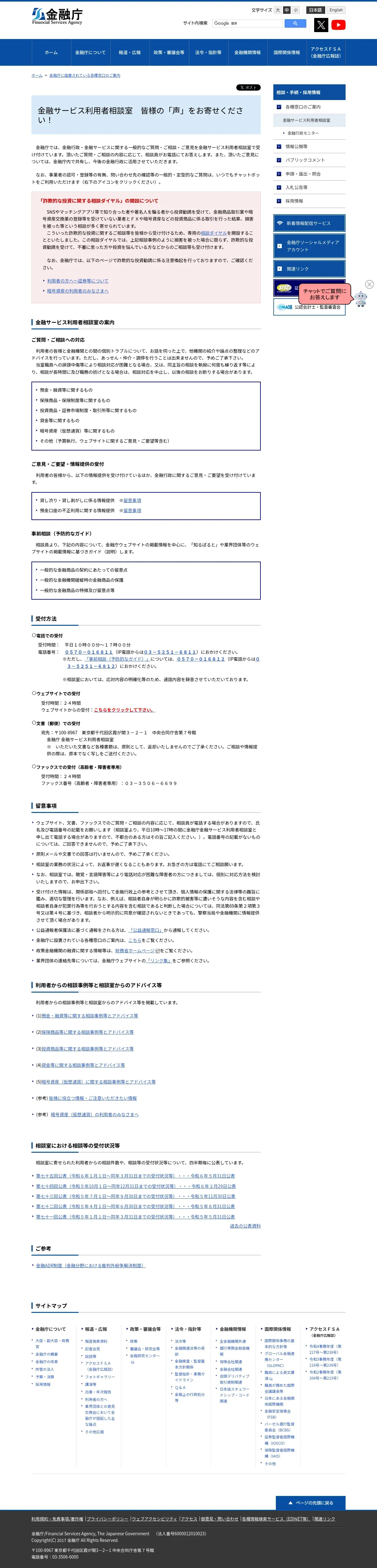 https://www.fsa.go.jp:443/receipt/soudansitu/index.html