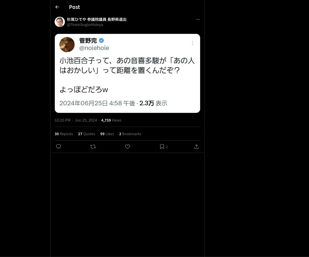 取得元URL: https://x.com:443/TeamSugioHideya/status/1805591801388310839