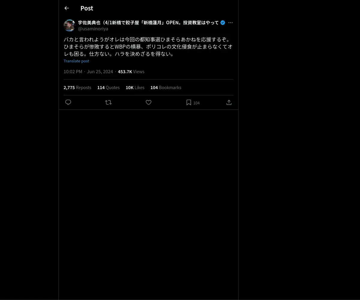 https://x.com:443/usaminoriya/status/1805587485470474370