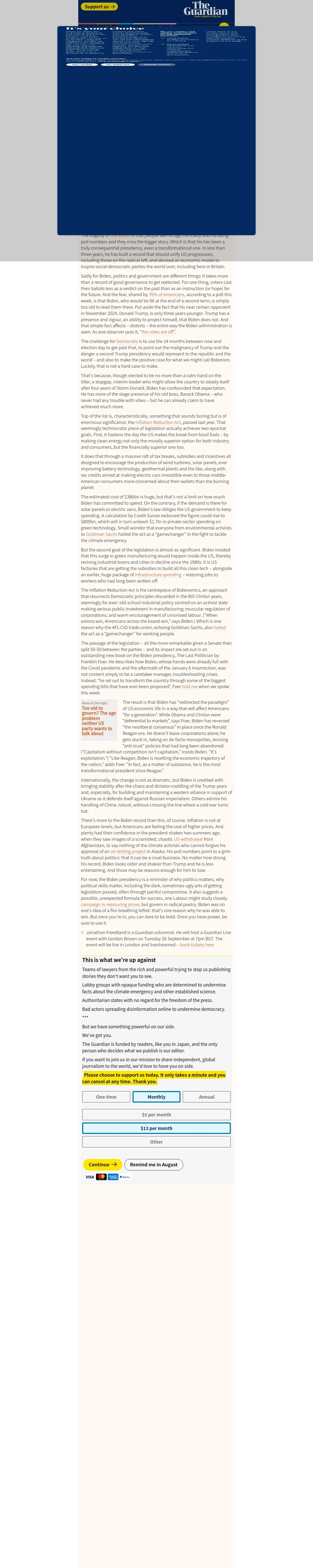 取得元URL: https://amp.theguardian.com:443/commentisfree/2023/sep/08/joe-biden-presidency-progressives-donald-trump