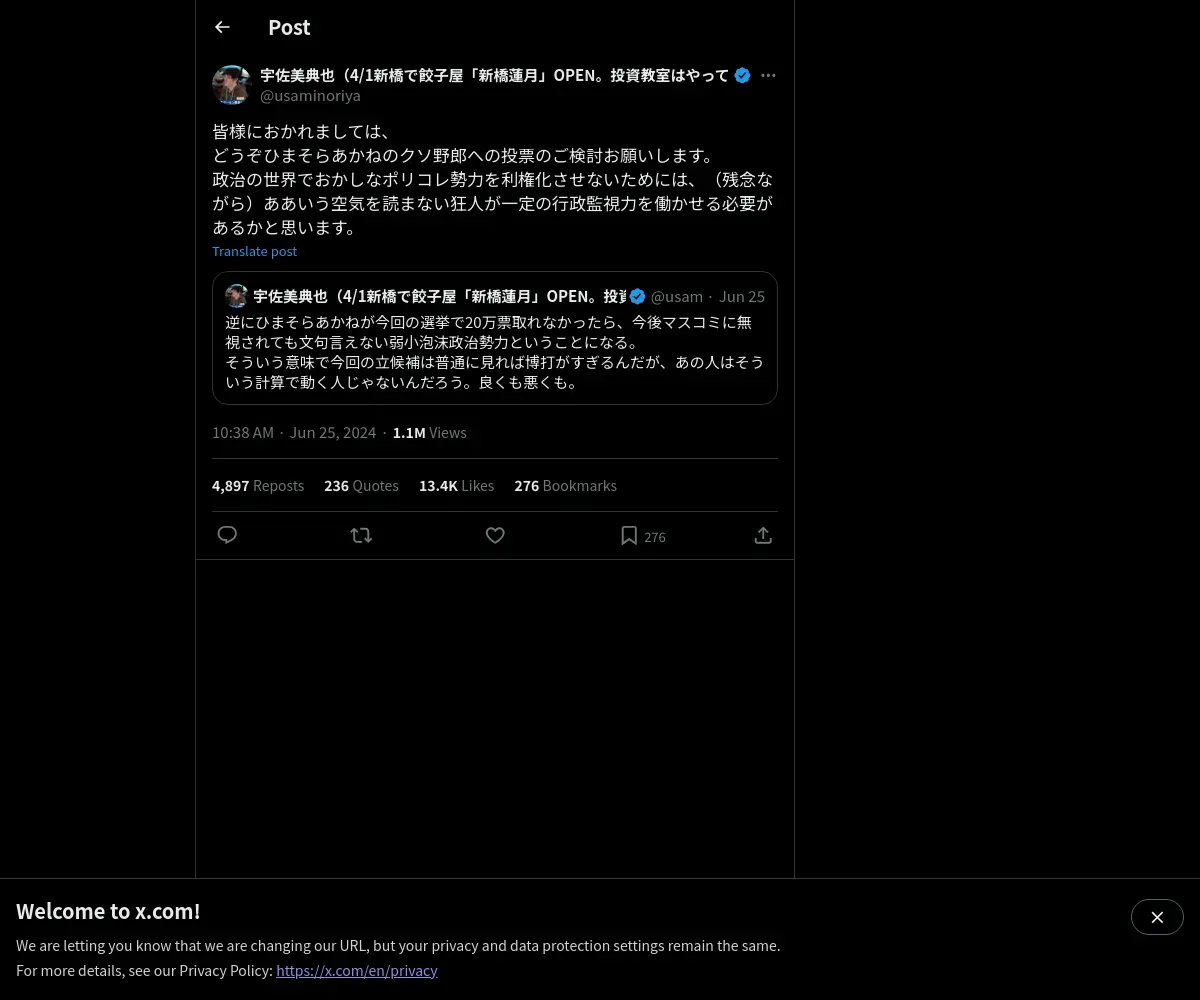https://x.com:443/usaminoriya/status/1805415219453477308