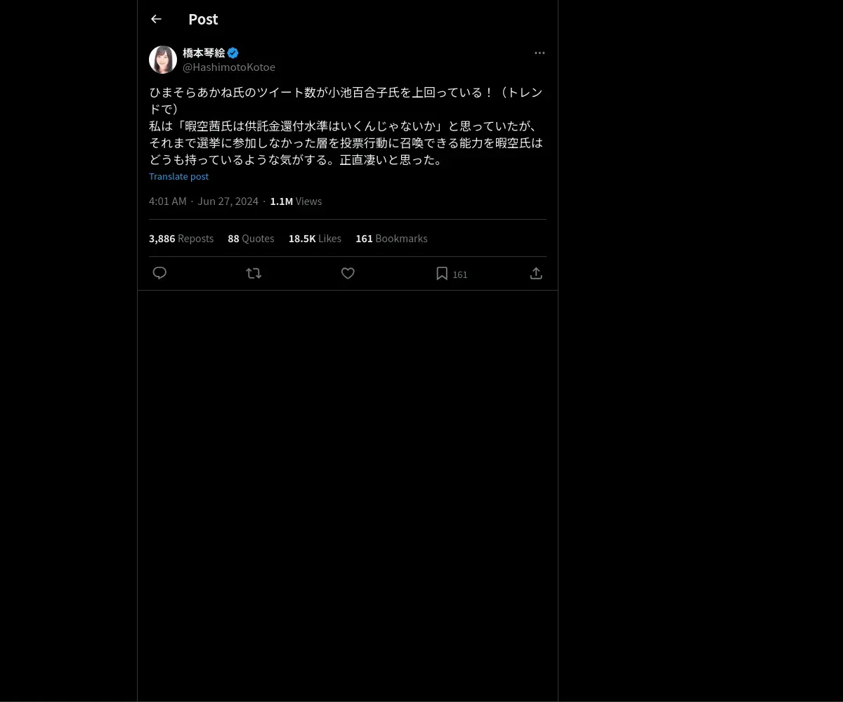 https://x.com:443/HashimotoKotoe/status/1806040102290010324