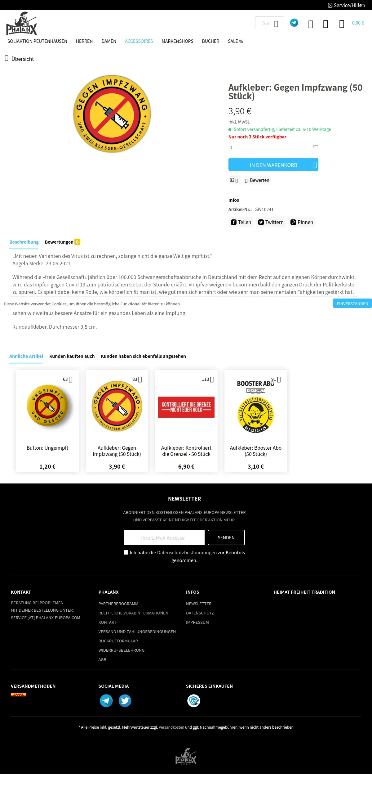 https://www.phalanx-europa.com:443/accessoires/aufkleber/742/aufkleber-gegen-impfzwang-50-stueck