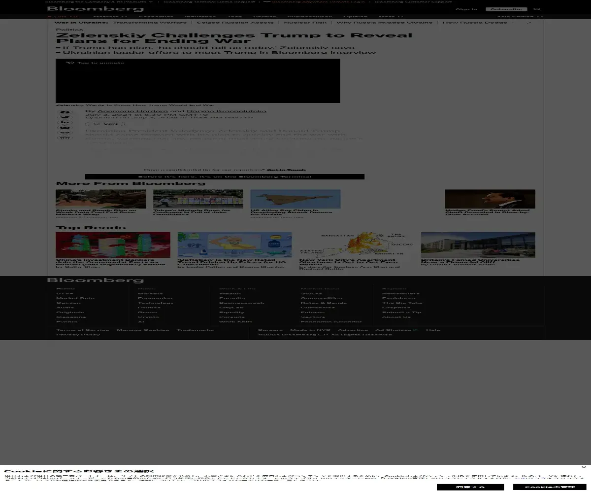 https://www.bloomberg.com:443/news/articles/2024-07-03/zelenskiy-challenges-trump-to-reveal-plans-for-quick-end-to-war?srnd=homepage-europe