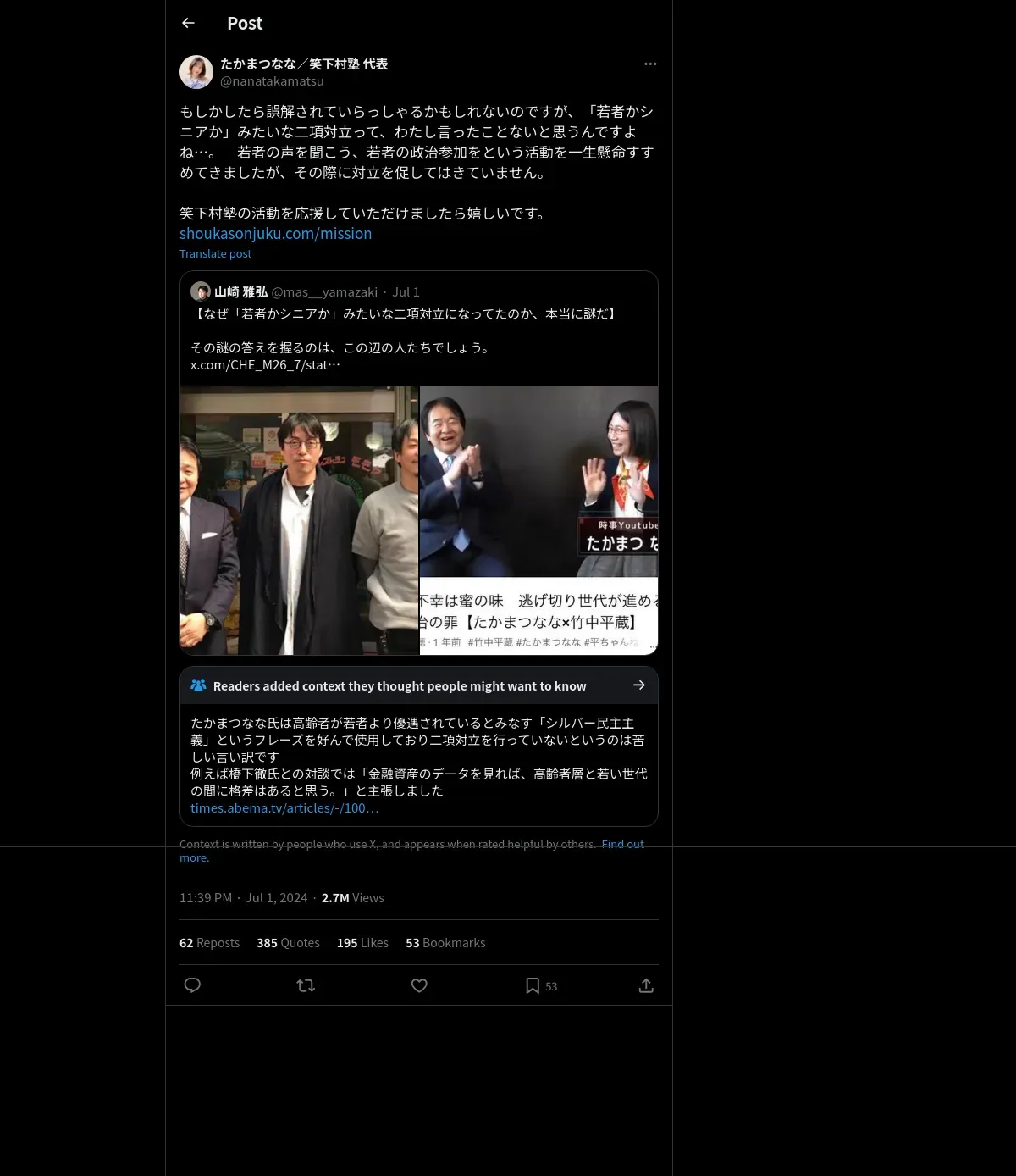https://x.com:443/nanatakamatsu/status/1807786218488504656