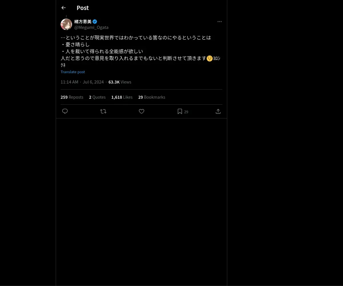 https://x.com:443/Megumi_Ogata/status/1809410462490194090