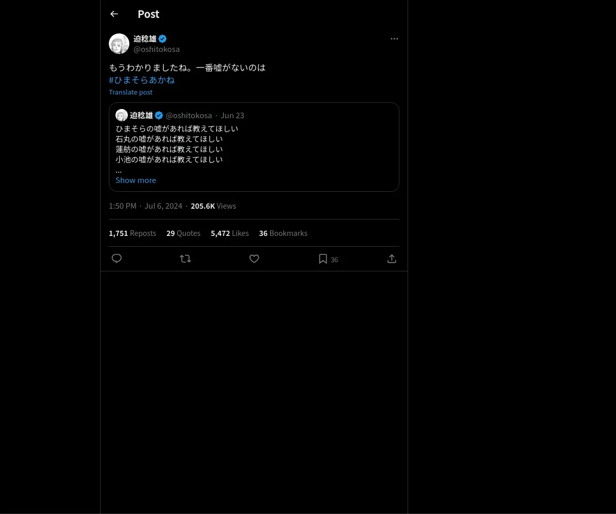 https://x.com:443/oshitokosa/status/1809449752645476412